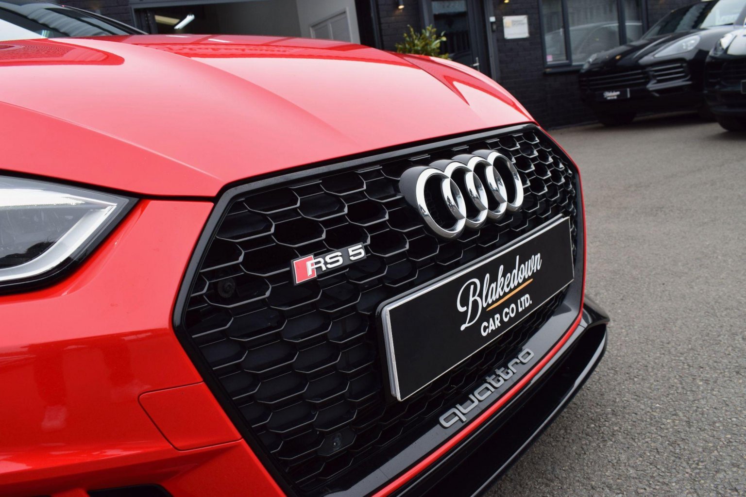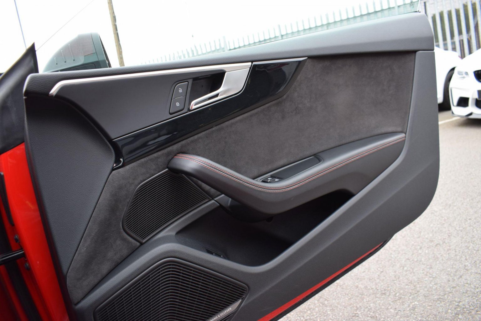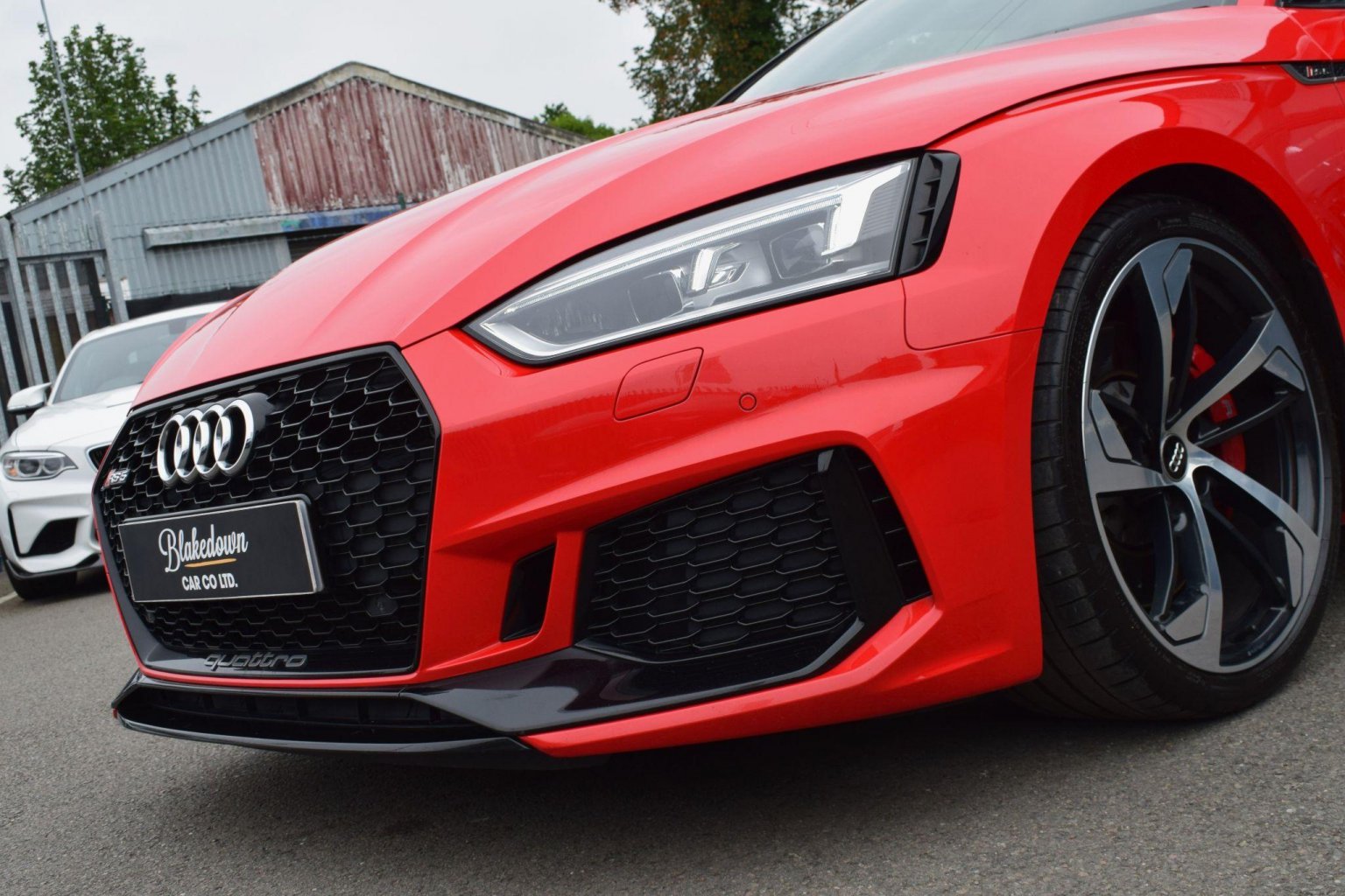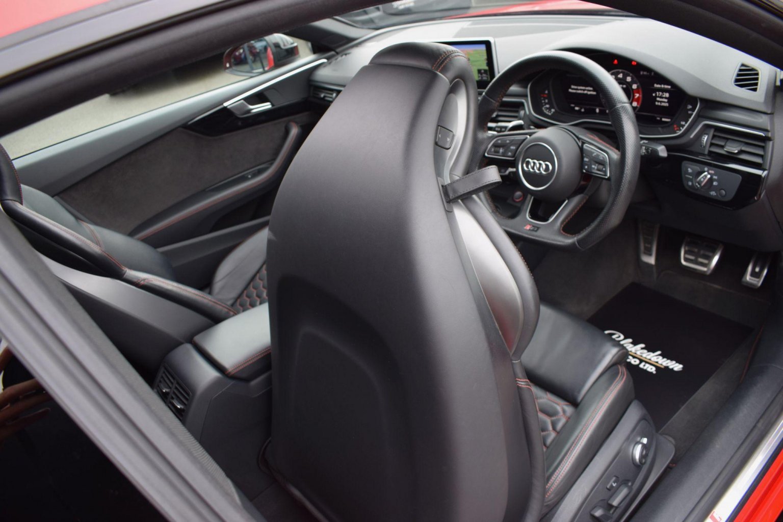 2018 ’18 Audi RS5 2.9 TFSI V6 Tiptronic quattro finished in a beautiful combination of Misano Red Pearl Effect with full Black Fine Nappa leather interior and Crescendo Red contrast stitching. 67950 miles covered by just two keepers from new. This is backed up with Audi service history to 2021 then independent and specialist service history up to and including 2025. As part of our pre sale prep we have completed an extensive major service including various on top of the standard engine oil and filter replacement such as spark plugs, front differential service, rear differential service, pollen filter, air filter and brake fluid. Supplied with all correct documentation, handbooks etc and subjected to our usual strict pre delivery inspection and preparation process ensuring all cosmetic and mechanical elements are in good order. This example is boasting a fantastic factory specification with a hist of factory options fitted to include: Panoramic Glass Sunroof, Comfort and Sound Package, Bang & Olufsen Sound System, Rear-View Camera, Hill-Hold Assist, Advanced Key (Keyless Entry and Start), RS Sports Exhaust System, Black Styling Package, 20in Alloy Wheels - 5-Arm-trapezoid Design Forged in Anthracite Black - Diamond Cut Finish, Brake Calipers - Red, Extended LED Interior Lighting Package - Multi-Coloured, Inlays - Piano Finish - Black and Privacy Glass. Other highlights include: Audi Side Assist, Audi Smartphone Interface, Audi Virtual Cockpit, DAB, Deluxe 3-Zone Electronic Climate Control, Door Sill Trims - Illuminated with RS5 Logo, Flat-Bottomed High Multi-function 3-Spoke Leather Sport Steering Wheel, Heated Front Seats, High-Beam Assist, MMI Navigation and more.