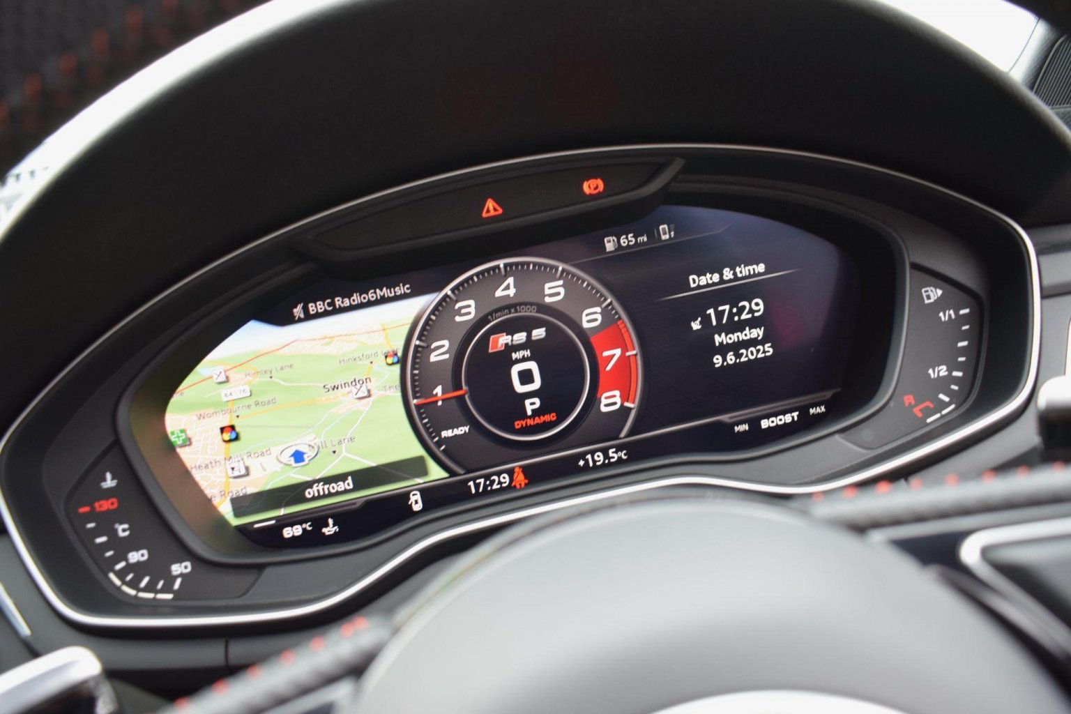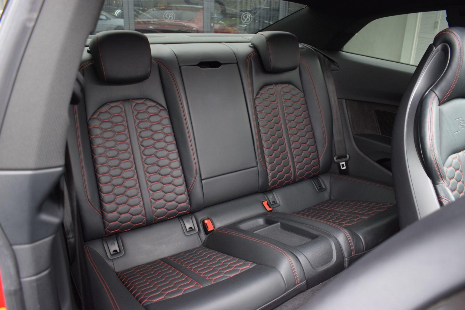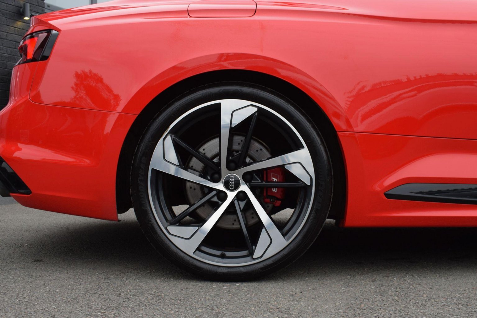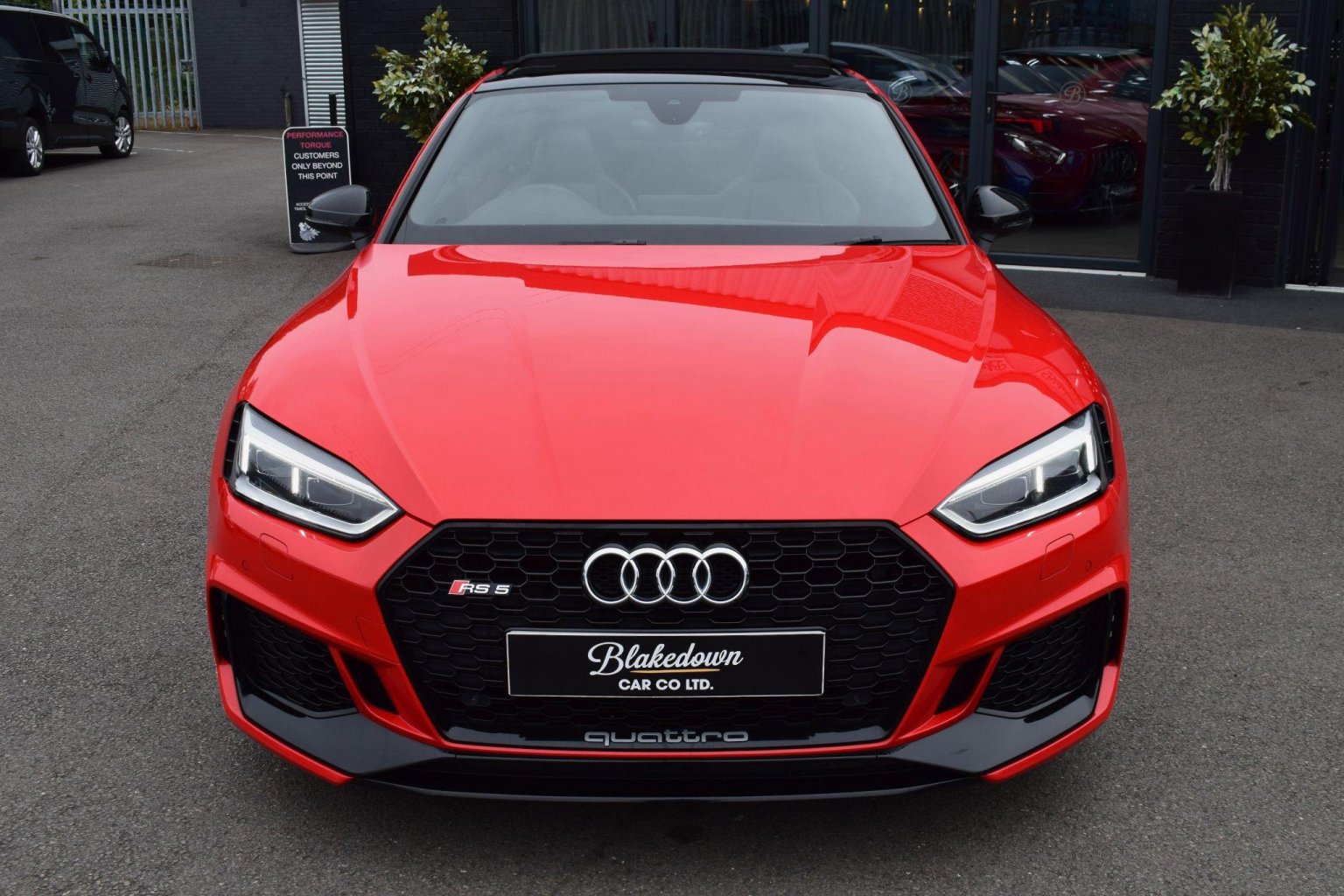 2018 ’18 Audi RS5 2.9 TFSI V6 Tiptronic quattro finished in a beautiful combination of Misano Red Pearl Effect with full Black Fine Nappa leather interior and Crescendo Red contrast stitching. 67950 miles covered by just two keepers from new. This is backed up with Audi service history to 2021 then independent and specialist service history up to and including 2025. As part of our pre sale prep we have completed an extensive major service including various on top of the standard engine oil and filter replacement such as spark plugs, front differential service, rear differential service, pollen filter, air filter and brake fluid. Supplied with all correct documentation, handbooks etc and subjected to our usual strict pre delivery inspection and preparation process ensuring all cosmetic and mechanical elements are in good order. This example is boasting a fantastic factory specification with a hist of factory options fitted to include: Panoramic Glass Sunroof, Comfort and Sound Package, Bang & Olufsen Sound System, Rear-View Camera, Hill-Hold Assist, Advanced Key (Keyless Entry and Start), RS Sports Exhaust System, Black Styling Package, 20in Alloy Wheels - 5-Arm-trapezoid Design Forged in Anthracite Black - Diamond Cut Finish, Brake Calipers - Red, Extended LED Interior Lighting Package - Multi-Coloured, Inlays - Piano Finish - Black and Privacy Glass. Other highlights include: Audi Side Assist, Audi Smartphone Interface, Audi Virtual Cockpit, DAB, Deluxe 3-Zone Electronic Climate Control, Door Sill Trims - Illuminated with RS5 Logo, Flat-Bottomed High Multi-function 3-Spoke Leather Sport Steering Wheel, Heated Front Seats, High-Beam Assist, MMI Navigation and more.
