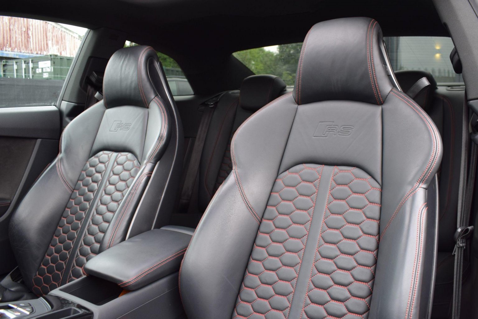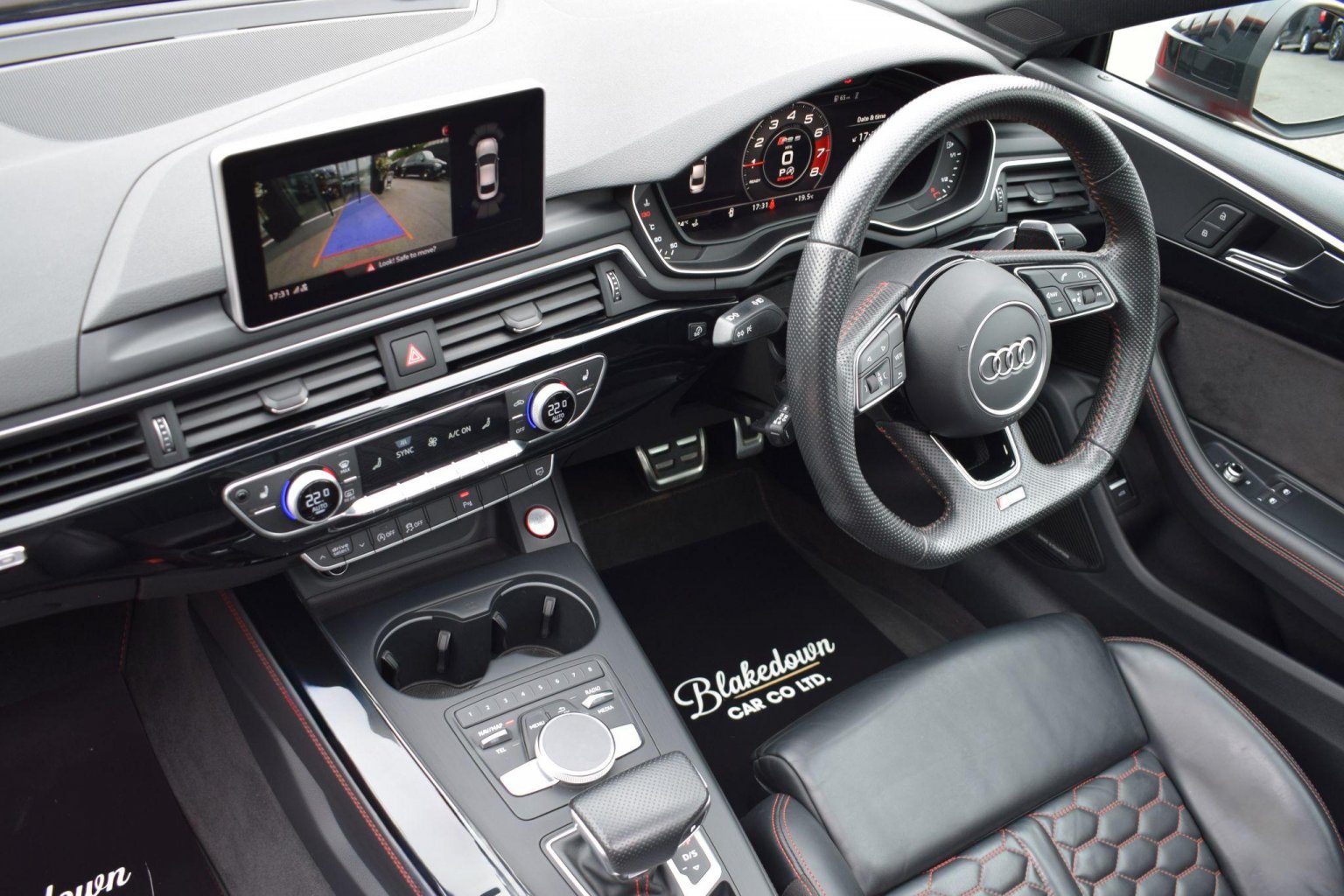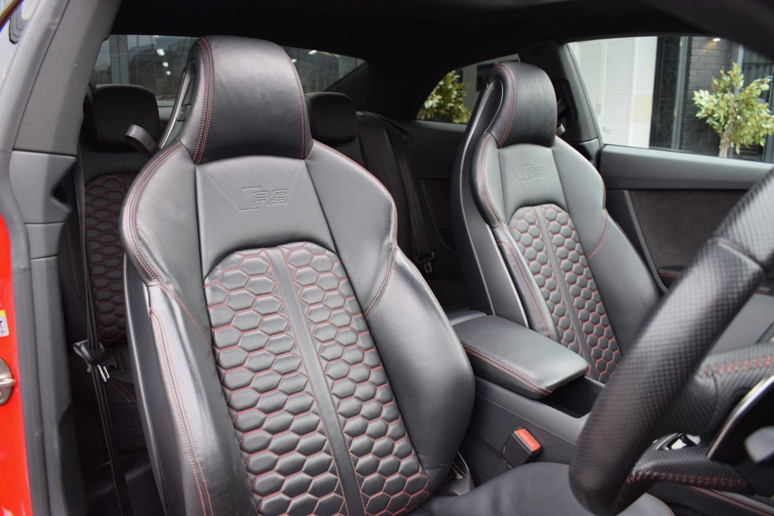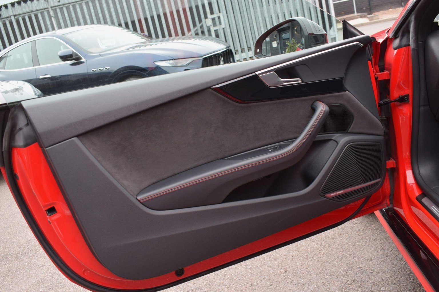 2018 ’18 Audi RS5 2.9 TFSI V6 Tiptronic quattro finished in a beautiful combination of Misano Red Pearl Effect with full Black Fine Nappa leather interior and Crescendo Red contrast stitching. 67950 miles covered by just two keepers from new. This is backed up with Audi service history to 2021 then independent and specialist service history up to and including 2025. As part of our pre sale prep we have completed an extensive major service including various on top of the standard engine oil and filter replacement such as spark plugs, front differential service, rear differential service, pollen filter, air filter and brake fluid. Supplied with all correct documentation, handbooks etc and subjected to our usual strict pre delivery inspection and preparation process ensuring all cosmetic and mechanical elements are in good order. This example is boasting a fantastic factory specification with a hist of factory options fitted to include: Panoramic Glass Sunroof, Comfort and Sound Package, Bang & Olufsen Sound System, Rear-View Camera, Hill-Hold Assist, Advanced Key (Keyless Entry and Start), RS Sports Exhaust System, Black Styling Package, 20in Alloy Wheels - 5-Arm-trapezoid Design Forged in Anthracite Black - Diamond Cut Finish, Brake Calipers - Red, Extended LED Interior Lighting Package - Multi-Coloured, Inlays - Piano Finish - Black and Privacy Glass. Other highlights include: Audi Side Assist, Audi Smartphone Interface, Audi Virtual Cockpit, DAB, Deluxe 3-Zone Electronic Climate Control, Door Sill Trims - Illuminated with RS5 Logo, Flat-Bottomed High Multi-function 3-Spoke Leather Sport Steering Wheel, Heated Front Seats, High-Beam Assist, MMI Navigation and more.