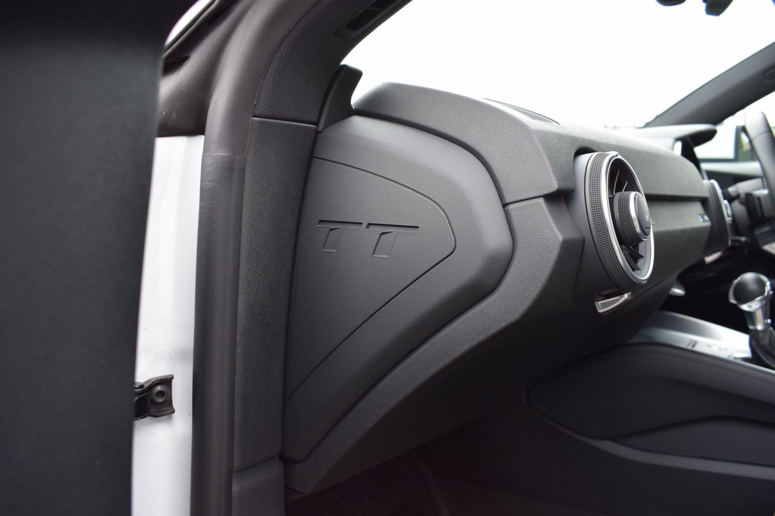 2019 ’19 Audi TT 2.0 TFSI 40 S line S Tronic finished in optional Glacier White Metallic (not to be confused with flat Ibis White) and black part leather interior. 54800 miles covered by two owners which is supported with excellent service history consisting of regular servicing plus an S Tronic gearbox service completed in house as part of pre-sale prep. Presented in excellent condition throughout and supplied with all correct documentation, handbooks, accessories etc and this car has been subjected to our usual strict pre delivery inspection and preparation process ensuring all cosmetic and mechanical elements are in good order. This example is boasting a great spec with a long list of features and equipment including the sought after optional Technology Package. Highlights include: Technology Package (Audi Music Interface, Navigation System High, MMI Navigation Plus and Audi Phone Box with Wireless Charging), 19in Alloy Wheels - Forged 5-Spoke Design, 4-Way Electric Lumbar Support for Front Seats, Audi Drive Select, Audi Virtual Cockpit, Cruise Control, DAB Digital Radio, Door Mirrors - Electrically Folding, Flat-Bottomed 3-Spoke Leather-Trimmed Multi-Function Sport Steering Wheel, Heated Front Seats, Hill Hold Assist, Inlays - Matt Brushed Aluminium, Keyless Go, LED Headlights with LED Rear Lights and Dynamic Rear Indicators, Rear Parking Sensors, Seats - Super Sports and more.