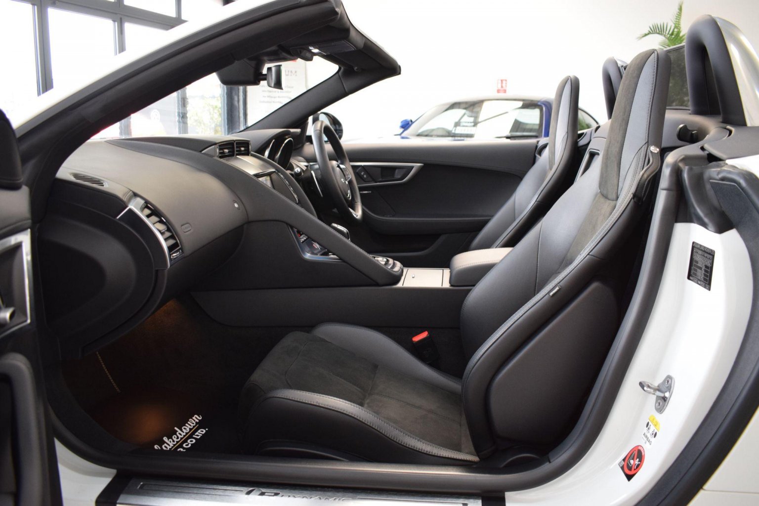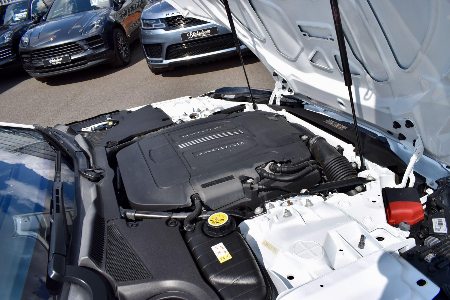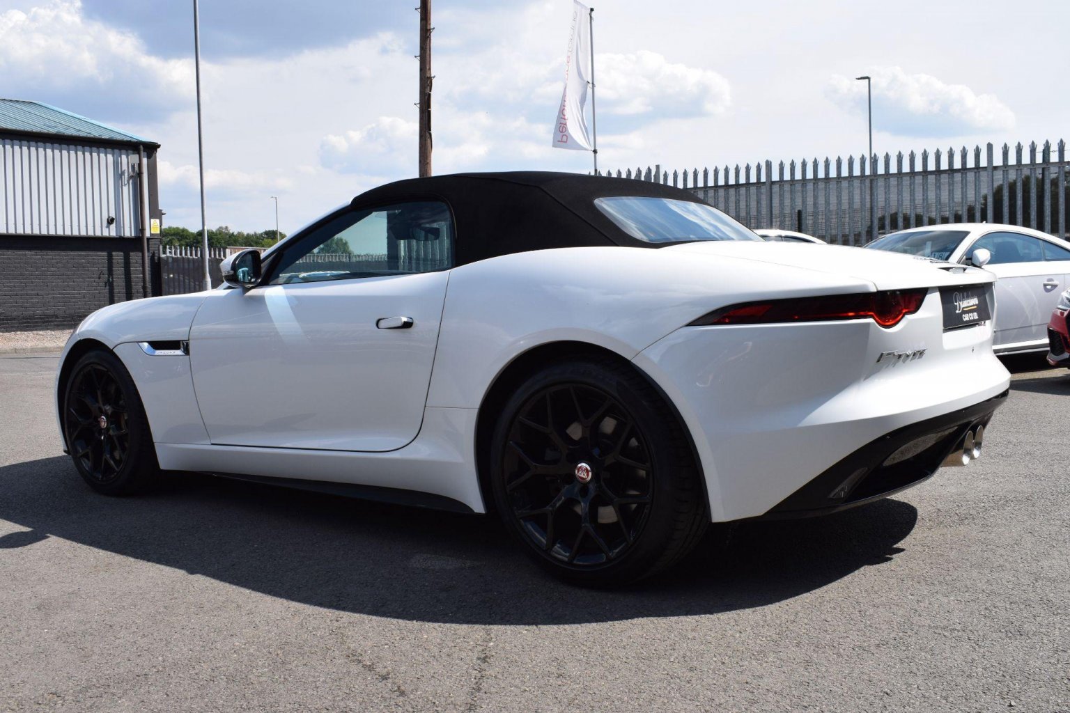 2018 ’18 Jaguar F-Type 3.0 V6 R-Dynamic Auto finished in Fuji White with black cabriolet roof and Ebony interior. Just 5750 miles covered which is supported with Jaguar service history with accompanying Online Service History printout. This car is presented in fantastic condition inside and out as you would expect from a low mileage example - bodywork, alloys and interior all very well kept. Supplied with all correct documentation, handbooks etc and subjected to our usual strict pre delivery inspection and preparation process ensuring all cosmetic and mechanical elements are in good order. Well equipped with a long list of features, highlights including: Front Parking Aid, Reverse Park Camera, Exterior Black Design Pack (inc extended side skirts, front splitter and rear diffuser all finished in gloss black), 19in Alloy Wheels - 7 Split-Spoke Style 7013, 6-Way Electric Front Seats, 8in Touchscreen, Cruise Control with Speed Limiter, Ebony Morzine Headlining, LED Headlights with Signature Daytime Running Lights and Adaptive Front Lighting, LED Tail Lights, Lane Departure Warning, Meridian Sound System, Navigation Pro System, Rear Parking Aid, Switchable Active Sports Exhaust, Touch Pro System, Wind Deflector and more.