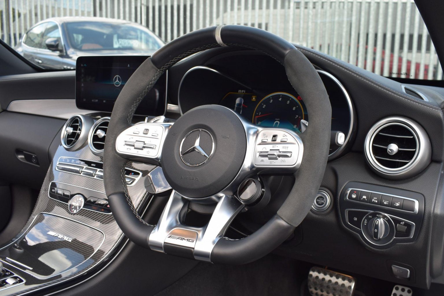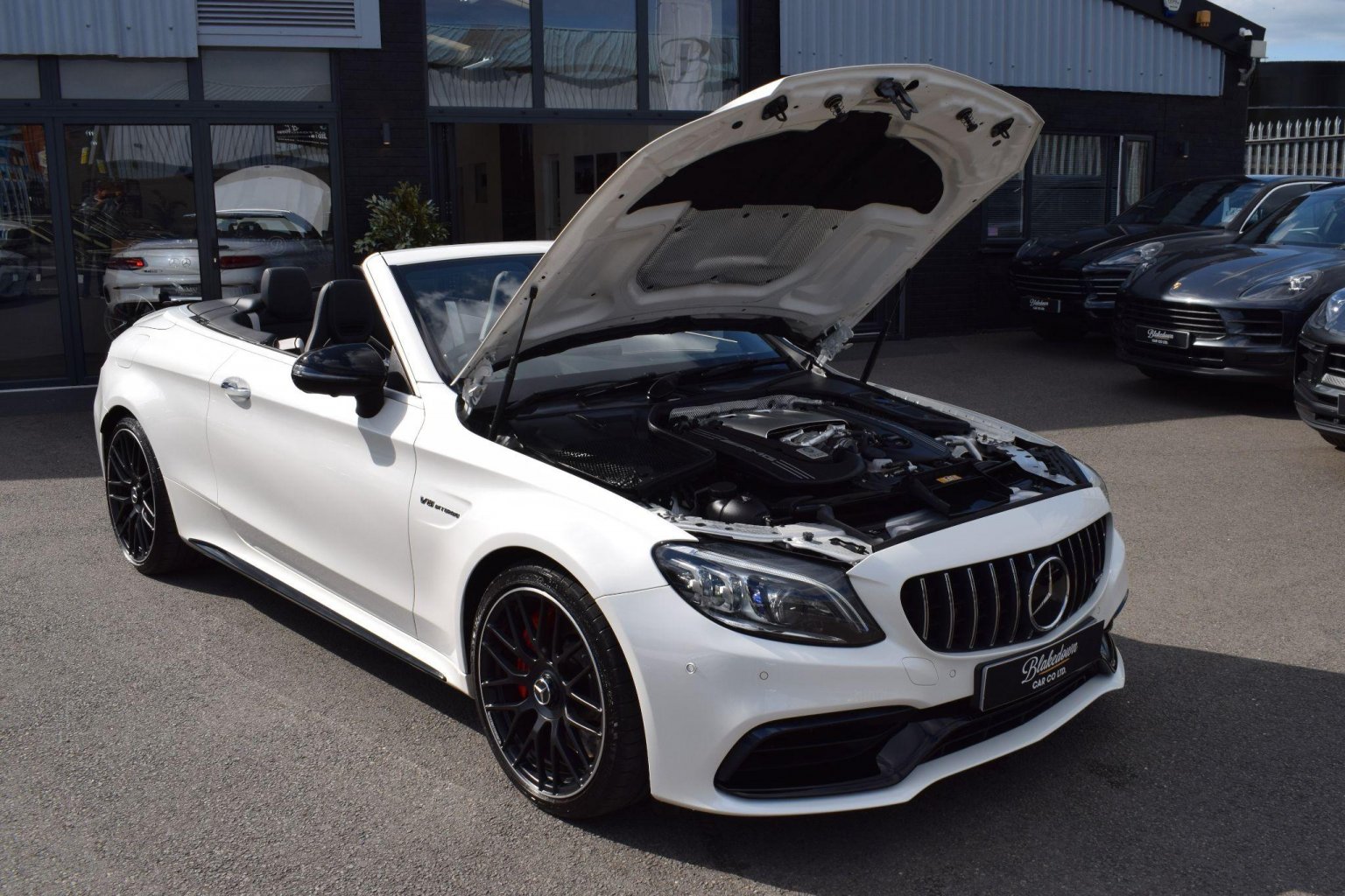 2021 ’21 (Facelift) Mercedes-Benz C63 S 4.0 AMG V8 BiTurbo Cabriolet (Premium Plus) finished in sought after Diamond White Metallic with Black Nappa Leather interior. Just 15400 miles covered and supported by annual Mercedes Benz service history. The last service was a B (major) with Plus Package and included several additional items including spark plugs, air filter and transmission oil. Exceptional condition inside and out - meticulously kept and presented beautifully as a result. Supplied with all correct documentation, handbooks etc and has been subject to our usual strict pre delivery inspection and preparation process ensuring all cosmetic and mechanical elements are in good order. Totally standard and boasting an incredible factory specification as an ’S Premium Plus’ model. Highlights include: 12.3in Digital Instrument Cluster Display, 19in Front-20in Rear Alloy Wheels - AMG Forged Cross-Spoke Design Painted Matt Black, 360 Degree Camera, AIRCAP - Wind Deflector and Draught-Stop, AMG Drivers Package, AMG Dynamic Select with a Choice of Driving Modes - Comfort-Sport-Sport Plus-Individual-Race, AMG Night Package, AMG Performance Exhaust System, AMG Performance Seats, AMG Track Pace - Records Lap Times on the Racetrack, Active Parking Assist including PARKTRONIC, Ambient Lighting, Burmester Surround Sound System, Head-Up Display, Heated Front Seats, Interior Lighting Package, MULTIBEAM LED Headlights, Memory Package, Race Start Function, Reversing Camera, Trim - Carbon Fibre, Wireless Charging Surface and more.