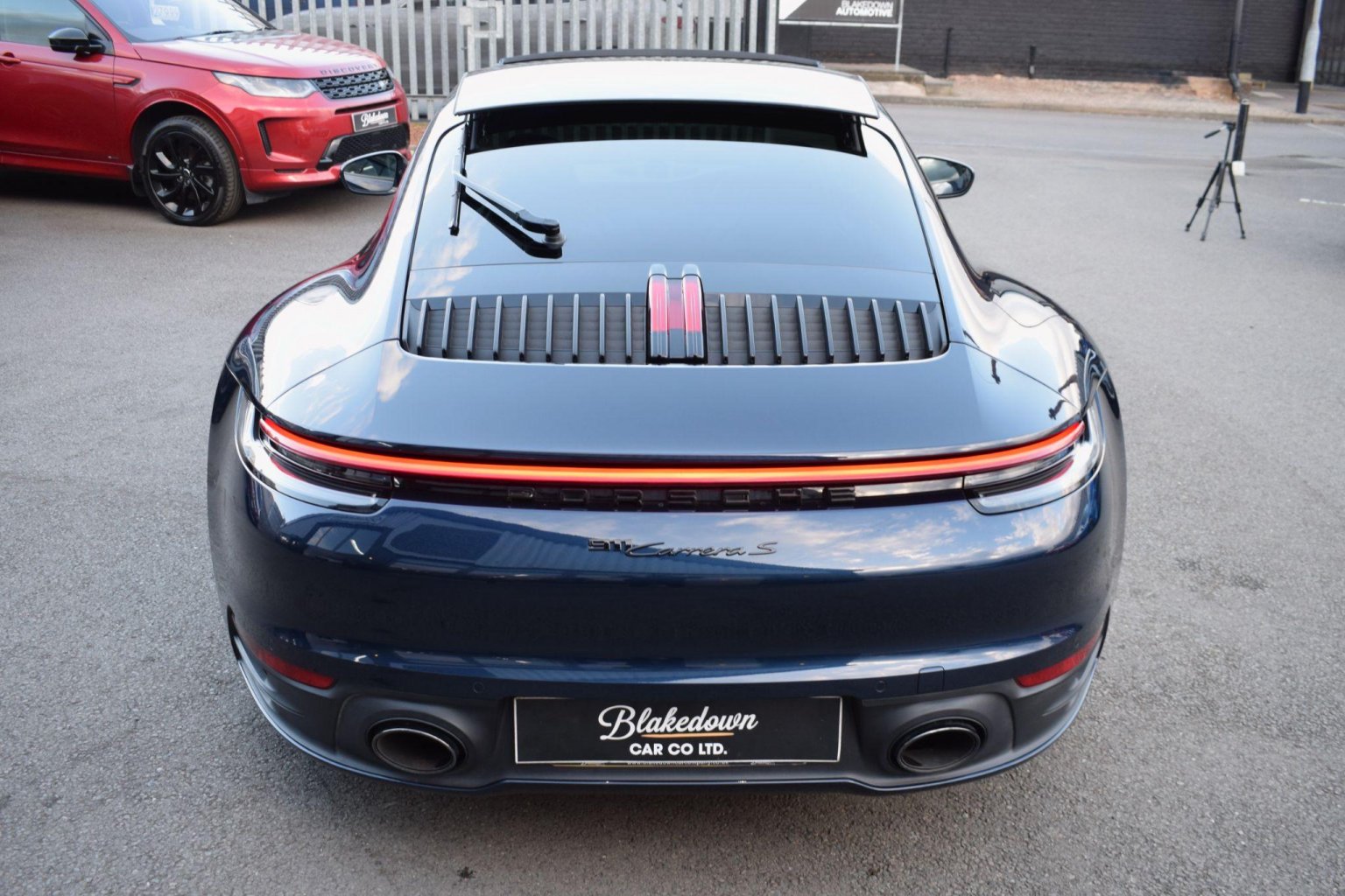 2020 ’20 Porsche 911 3.0T 992 Carrera S PDK Coupe finished in beautiful Night Blue Metallic with full Black leather Interior and Crayon contrast stitching. Just 13900 miles covered with Porsche and Specialist service history to support. This includes a recent major specialist service completed by Brookspeed in February 2025 at a cost of over £1300 including spark plugs leaving the next service not due until 2027. Supplied with all correct documentation, handbooks etc and this car has been subjected to our usual strict pre delivery inspection and preparation process ensuring all cosmetic and mechanical elements are in good order including matching Pirelli P Zero tyres. This 911 is presented in excellent condition as you'd expect with interior, exterior, alloys and all trim very well preserved. Incredible specification on this car on top of the desirable colour combination with a host of sought after options fitted which include: Electric Slide and Tilt Sunroof (Painted), Sport Chrono Package including Mode Switch, LED Main Headlights including Porsche Dynamic Light System - PDLS, Sports Exhaust System in Black, PASM - Porsche Active Suspension Management with Ride Height Lowered by 10mm, Sports Seats - 4-Way Electric, GT Sport Steering Wheel in Leather, Porsche Crest on Head Restraints, Electrically Folding Exterior Mirrors, Rear Wiper, PORSCHE Logo Painted - Black High Gloss, “911 Carrera S" Logo in High Gloss Black, Automatically Dimming Mirrors with Integrated Rain Sensor, Under Door Puddle Light Projectors and Privacy Glass. Other highlights include: 10.9in Centre Display, Automatic Headlight Activation including Welcome Home Lighting, Cruise Control with Speed Limiter, DAB Digital Radio, Keyless Go, PCM - Porsche Communication Management - Including Online Navigation Module and Connect Plus, PORSCHE Lettering Integrated in Taillight Strip, Porsche Torque Vectoring Plus - PTV Plus with Electronically Locking Rear Differential and Fully Variable Torque Distribution, Seats - Heated Front, 2-Zone Automatic Climate Control, Tyre Pressure Monitoring - TPM and more.