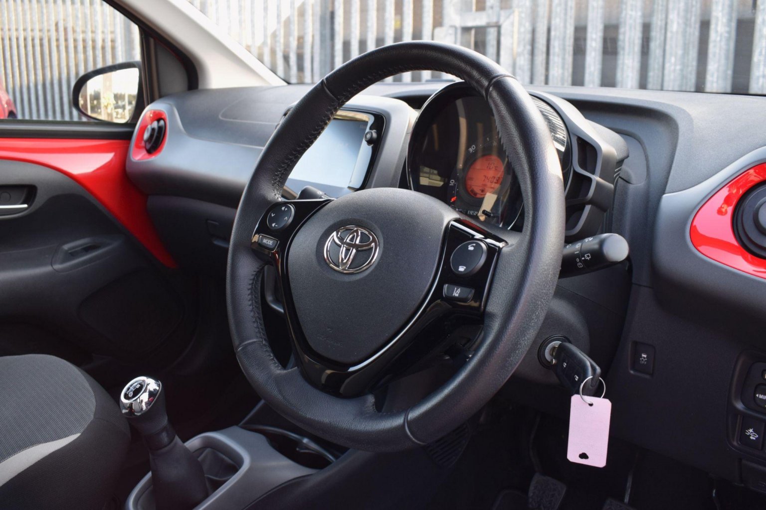 2021 ’21 Toyota AYGO 1.0 VVT-i x-trend Euro 6 5dr (Safety Sense) finished in Red Pop with grey/black interior. 74000 miles covered by just one owner from new which is supported with incredible Toyota main dealer service history. This consists of an impressive 7 stamped services, the last of which was completed in February 2025 by Steven Eagell Toyota Birmingham. This car is presented in fantastic condition inside and out as you would expect - bodywork, alloys and interior all very well maintained and meticulously cared for by the same mature owner from new. Supplied with all correct documentation, handbooks etc and subjected to our usual strict pre delivery inspection and preparation process ensuring all cosmetic and mechanical elements are in good order including matching quality Yokohama tyres. Well equipped with a long list of features which highlights including: 15in Alloy Wheels - 8 Spoke - Black Machined-Faced, 7in x-touch Multimedia System, DAB Digital Radio, Daytime Running Lights - LED and Rear LEDs, Electric Front Windows, Electrically Adjustable Heated Door Mirrors, HAC - Hill Start Assist Control, ISOFIX Fixing Points, Rear Privacy Glass, Reversing Camera, Smartphone Integration - Powered by Pioneer, Space Saver Spare Wheel, Steering Wheel - Audio and Telephone Controls, Tyre Pressure Warning System and more.
